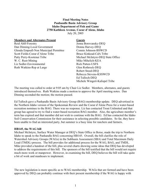 1 Final Meeting Notes Panhandle Basin Advisory Group Idaho